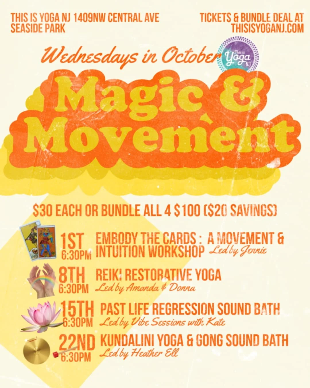 Cancellations 3-7 days before the event: 50% refund or credit toward a future event of your choice. A courtesy cancellation must be done by email (ThisIsYogaNJ@gmail.com) or text to 732-854-4858. This allows other friends to potentially fill the spot & compensate our instructors adequately.